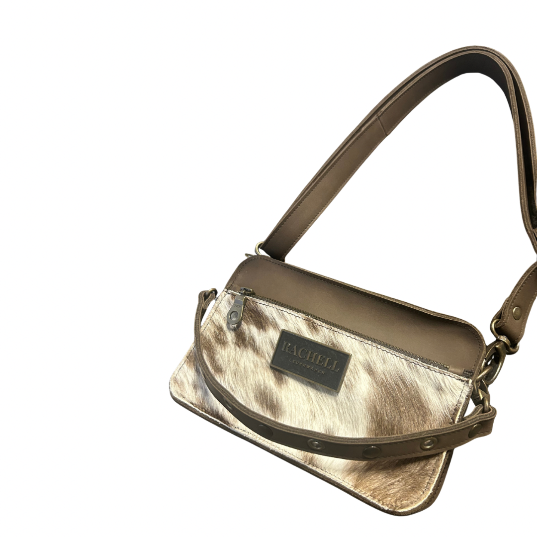 Crossbody tas Lois - Taupe combi koehuid